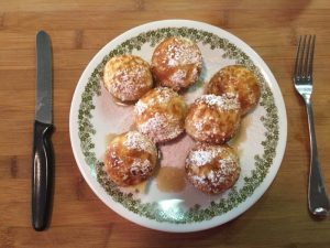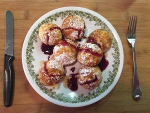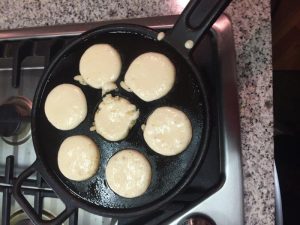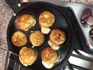 New holiday breakfast tradition – with shared stories of Grandma Jo – is JoJo Skevers. Batter mixed up cooked up and cooked in a cast iron pan on the stove top. served warm with tri-syrups are delish.