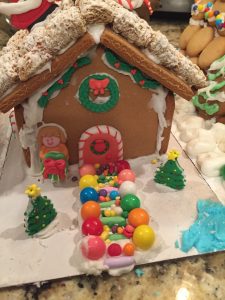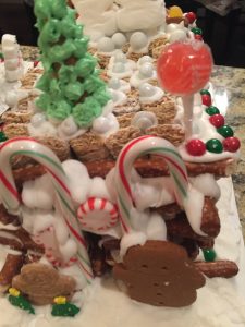 Decorating Gingerbread houses is always a favorite of my girl friends. I always look forward to it. I think we are getting betterat decorating…