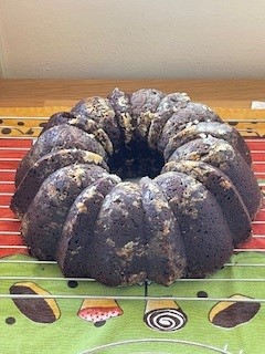 the image show the cake standing proudly on the cooling rack. it is clear the cake and oven had a bit of a disagreement during the baking process. Perhaps in the disagreement the cake just decided to run over and expand in all the wrong places. Despite the differences, the cake managed to escape the pan unscathed, a culinary miracle that every baker can appreciate,