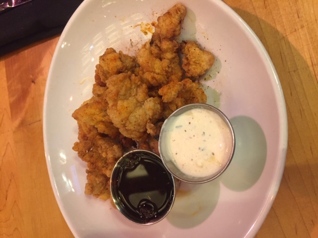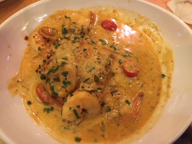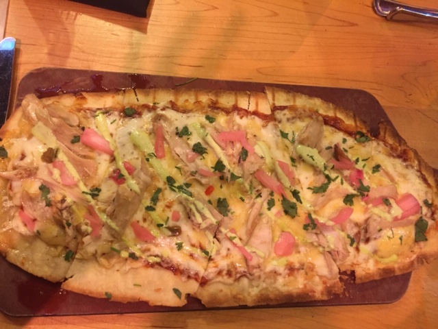 Service at the house of Blues with Missy is efficient and friendly. The thought of BBQ during the heat of the day ~ even thought that is what we had a taste for ~ took us deeper into the menu. Started with gator bites. Nicely seasoned, not to much of a bite. Top and center of the menu is shrimp and grits. Delightful flavors, shrimps perfectly cooked. Well recommended. the flat bread was tried by all. BBQ chicken, red onion, BBQ chicken on flat bread was well done.