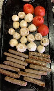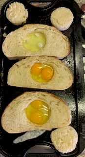 Home made breakfast. “what are your favorite cooked eggs?” plentiful and thankful (morning of Thanksgiving) eggs. Eggie Bread – of toads in the hole -with sizzling grilled tomatoes, eggs, sausage and baked beans is a great way to start the Tday … and what I am thankful for today.