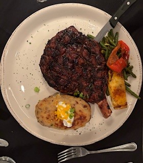 The atmosphere of the restaurant set up the eating experience perfectly. Soon after ordering, our steaming meals, intentionally and elegantly plated, came to our table. The first bite was nothing short of ascending. The 10oz New York strip with Bastien’s world famous sugar rub was simply perfect. It is evident that Bastien’s has invested in a chef who takes pride in the art of their cooking, as the steak was crispy at first taste, and then melted in your mouth like butter. The meat itself was tender and chewable, yet not overdone. With a side of the signature sautéed veggies and (my personal favorite) a twice baked potato – the food on the plate worked harmoniously together, mimicking the Blues Jazz trio playing in the background of our dining experience.